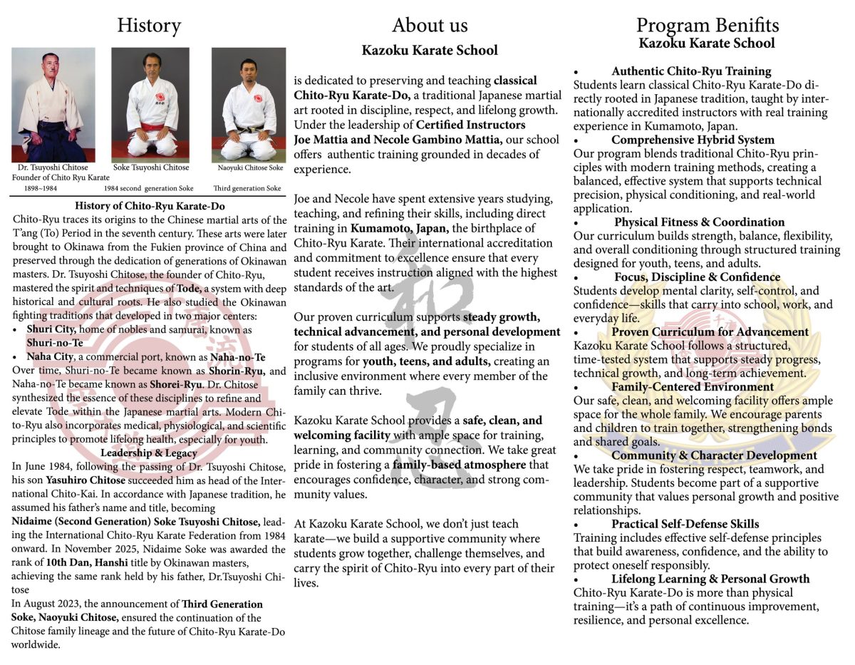 It is both a privilege and an honor to contribute to our community through the art of Chito-Ryu Karate. By promoting cultural education, fostering community enrichment, and advancing martial arts, we hope to inspire others to embark on their own journeys of growth and discovery.